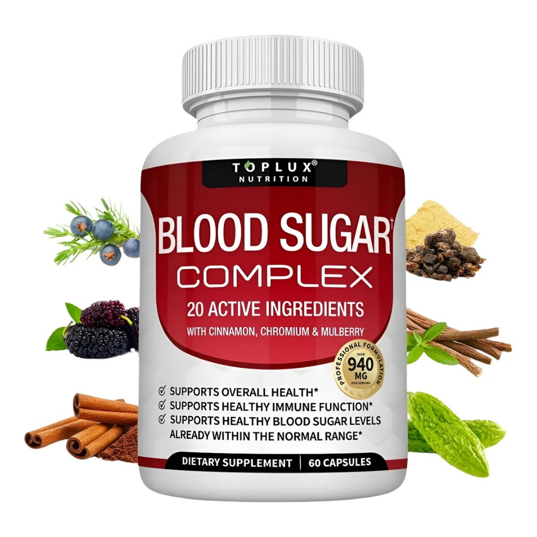 Blood Sugar Complex – Suplemento natural para niveles saludables de glucosa (60 cápsulas) Apoya tu bienestar diario con Blood Sugar Complex, una fórmula avanzada que combina 20 ingredientes activos cuidadosamente seleccionados—como canela, melón amargo, cromo, mora y ácido alfa-lipoico—diseñada para ayudar a mantener niveles saludables de azúcar en sangre dentro de rangos normales.