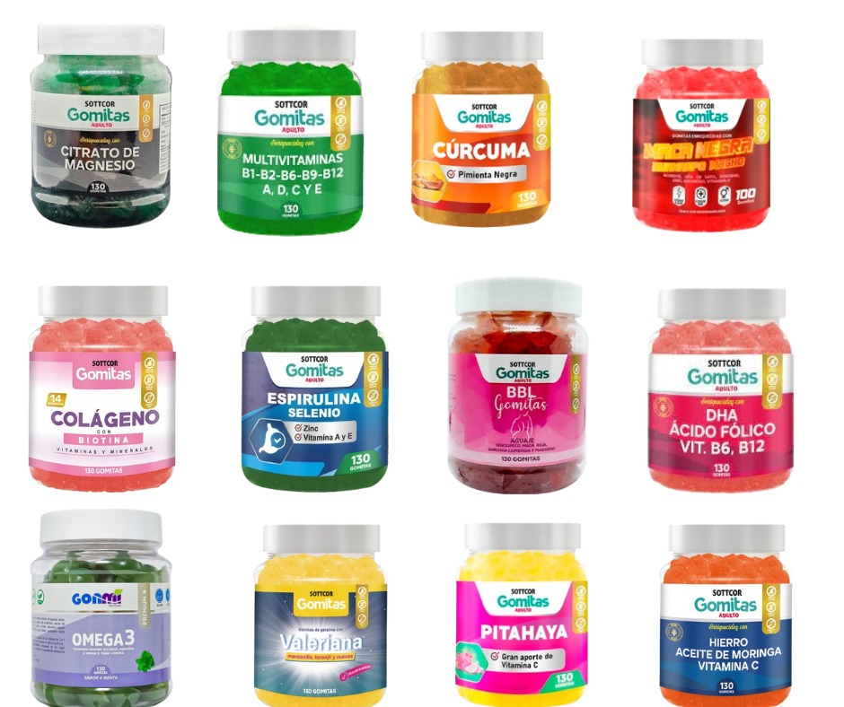 Tenemos amplia variedad en gomitas SOTTCOR . Son el complemento perfecto para quienes se preocupan por su bienestar diario. Su formato en gomitas hace que sea fácil y delicioso incorporarlas en tu rutina diaria.